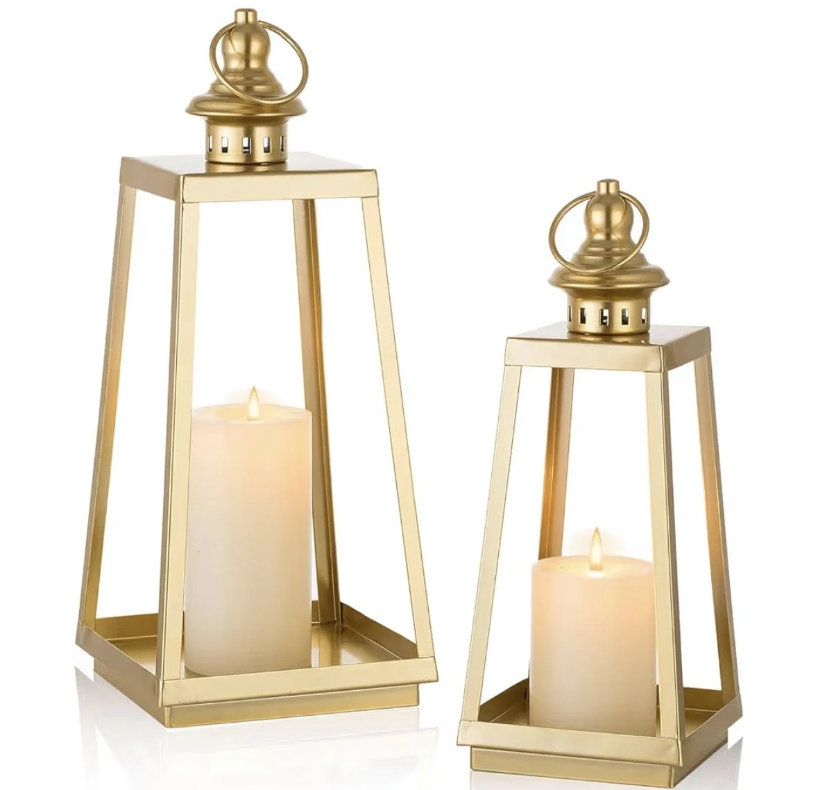 Blooms + decor › Gold lanterns (set of 2) Image 1 of 1 Gold lanterns (set of 2) $15.00 Please note:Does not come with candles Add To Cart Added! Please note:Does not come with candles